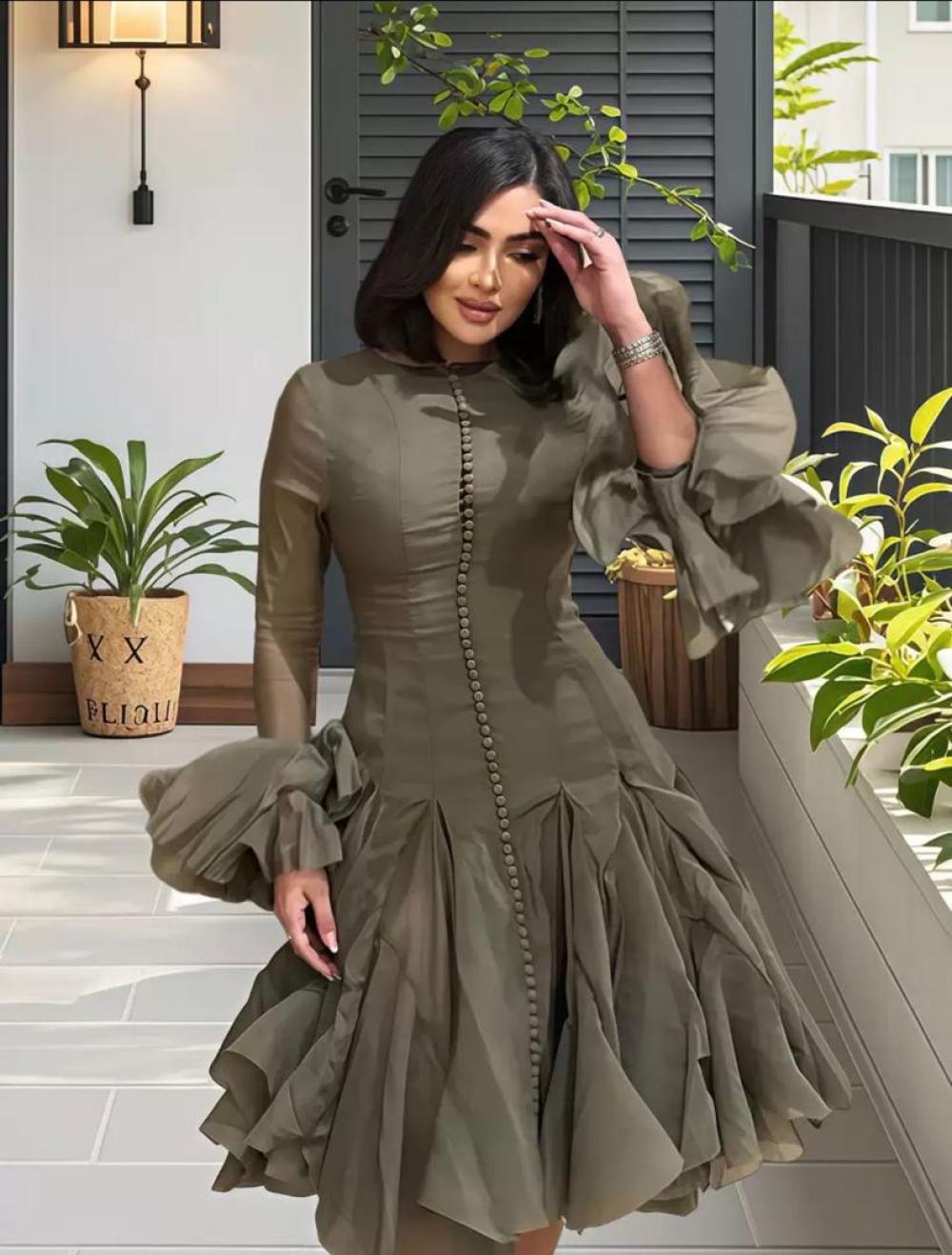 Midi Dress With Buttoned Down and Back Zip